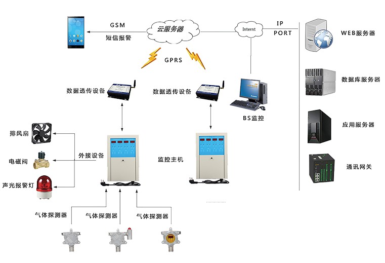 工厂面积较大,一个工厂内部需要安装多个监测设备,目前大部分监测设备都是本地控制,信息化整合薄弱,无法远程集中管理与查看数据,也无法快速得知哪个区域环境检测异常,从而做出更为正确的决策。