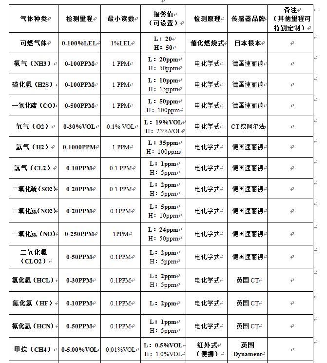 2)测量范围:0-100%LEL(可燃性气体);0-100PPM(量程由气体传感器决定)
