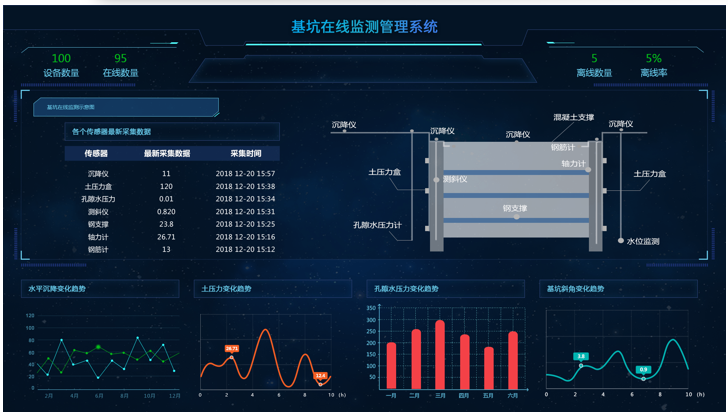 将结构健康监测与物联网结构体系、云计算、局域网/通讯网等多网无缝连接等技术结合,建立一套智能基坑在线监测系统,为基坑日常养护、管理和突发事件应急处置发挥重大作用。